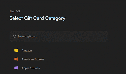 Step 4: Choose the gift card brand name from the drop-down list or by swiping.