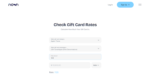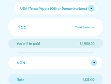 On the Nosh gift card trading app, the $100 USA iTunes gift card (other denominations) is currently N112,500 at the rate of N1,125 per dollar.