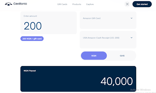 For a $200 US Amazon gift card (Cash Receipt 101 – 200), Cardtonic currently offers ₦200 per dollar, which amounts to ₦40,000.