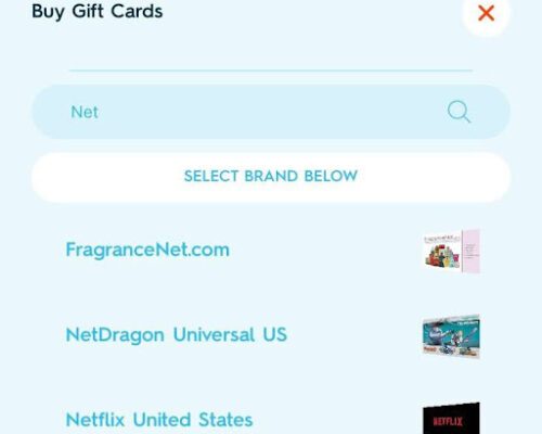 Step 6: Search and select the gift card brand you want, i.e, Netflix