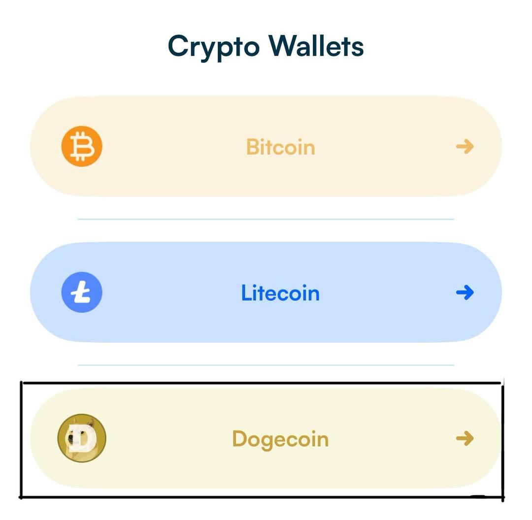 3. Choose âDogecoinâ from the crypto wallet options and tap “Create Wallet“.