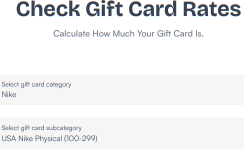 Note that the value of your Nike gift card isnât fixed and can change depending on the platform you use or the current market rate. A simple way to determine the exact value of your card is by using a gift card rate calculator.