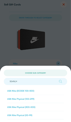 3. Choose âNikeâ as the gift card brand by swiping through the gift cards or using the drop-down menu.Â