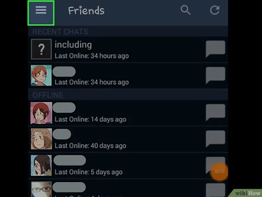 2. Open and scroll up to click on the 3 horizontal line menu.