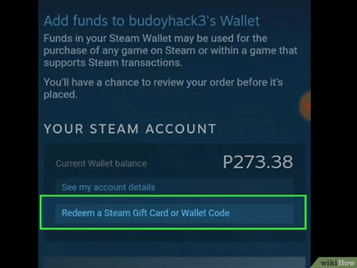6. Click “Redeem a Steam Gift Card or Wallet Code”.