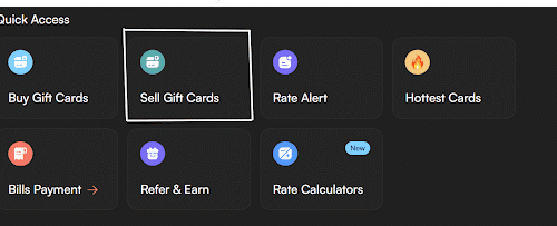 Once you’re logged in, tap on the “Sell Gift Cards” button from the homepage to start the process.