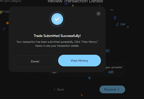 Next, you’ll be asked to review the details you have provided to be sure they’re correct. If everything is right, click on “Submit Trade.”
