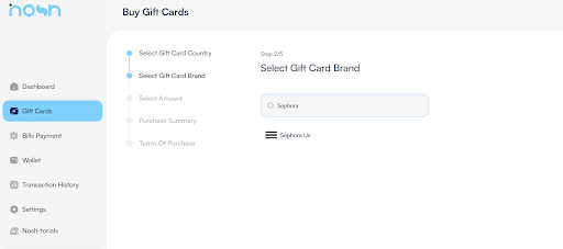 Use the step-by-step guide outlined below to buy a Sephora gift card on Nosh easily: