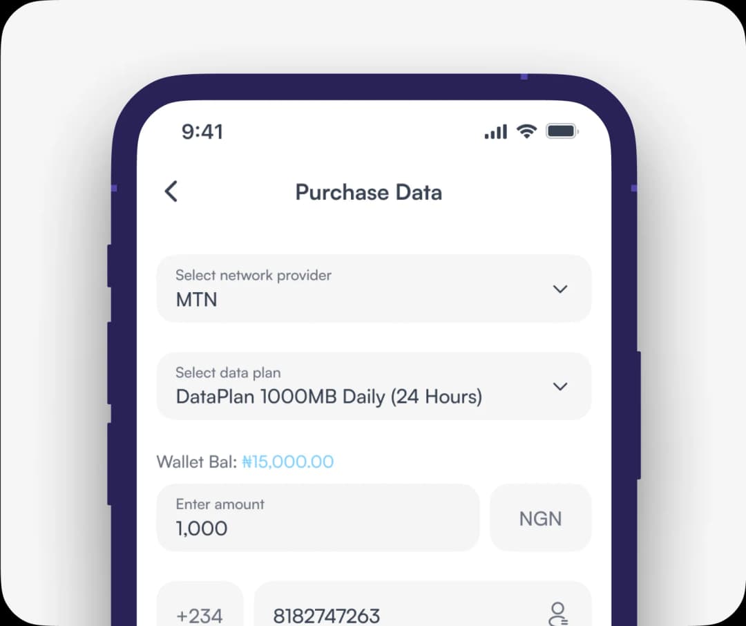 Nosh supports major Nigerian data networks including MTN, Airtel, GLO and 9mobile.
