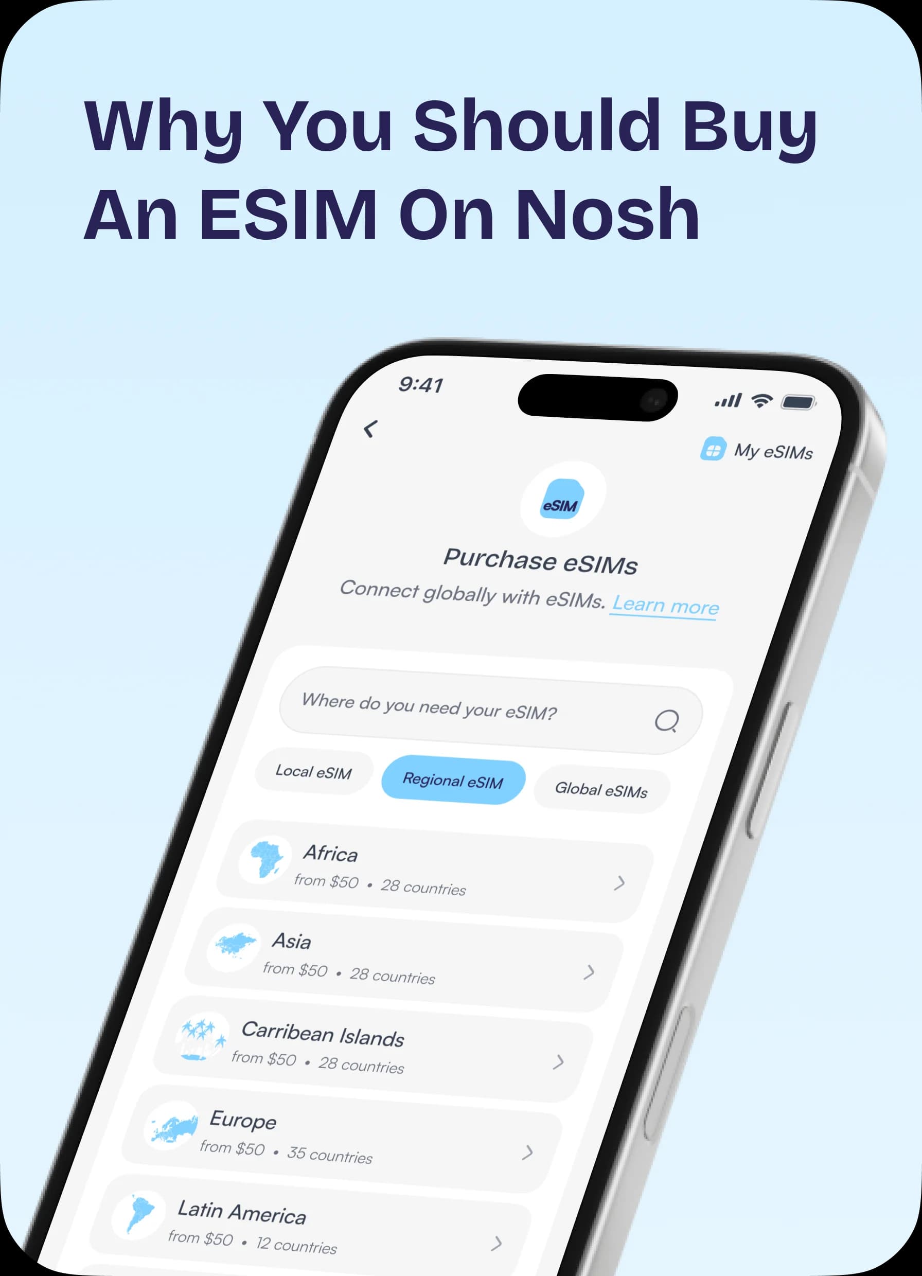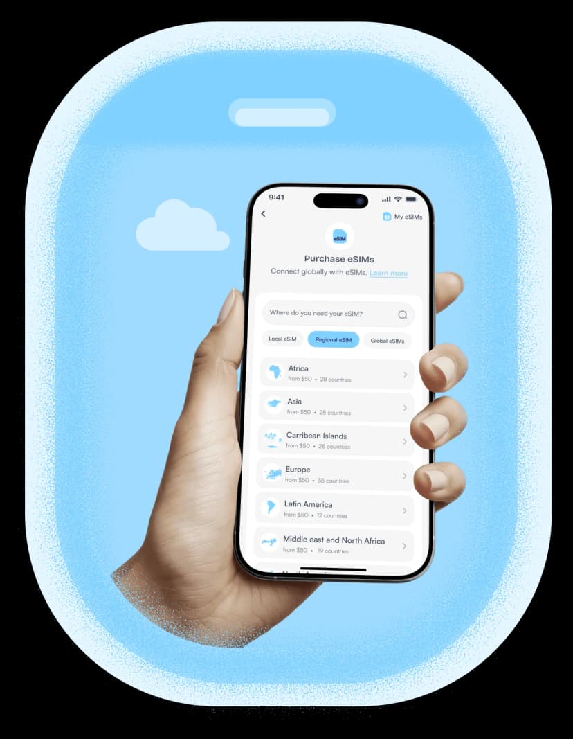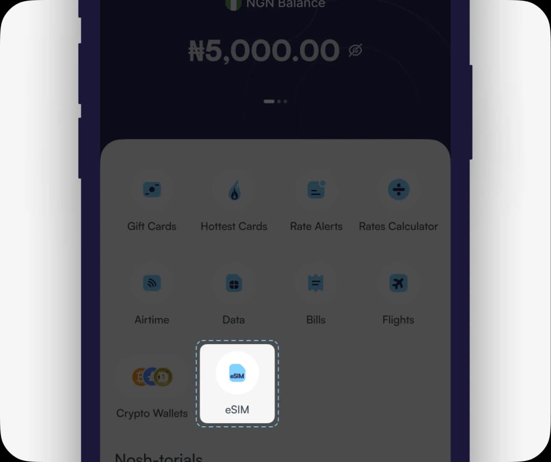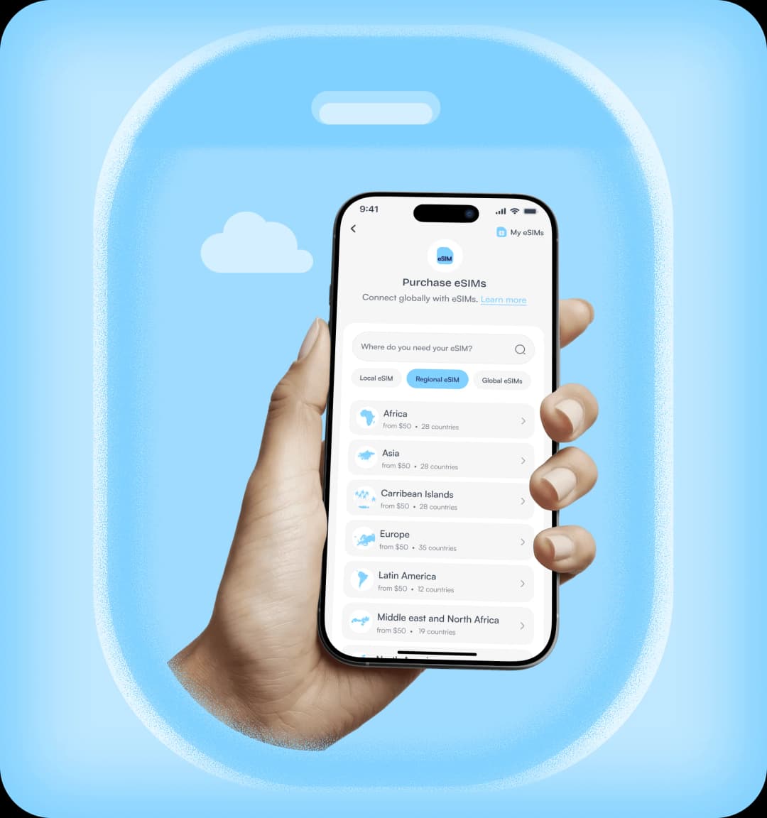 Purchase, activate and manage your eSIM plans directly on Nosh. Travel, work, and stay connected anywhere in the world with reliable local and international network coverage at your fingertips.
