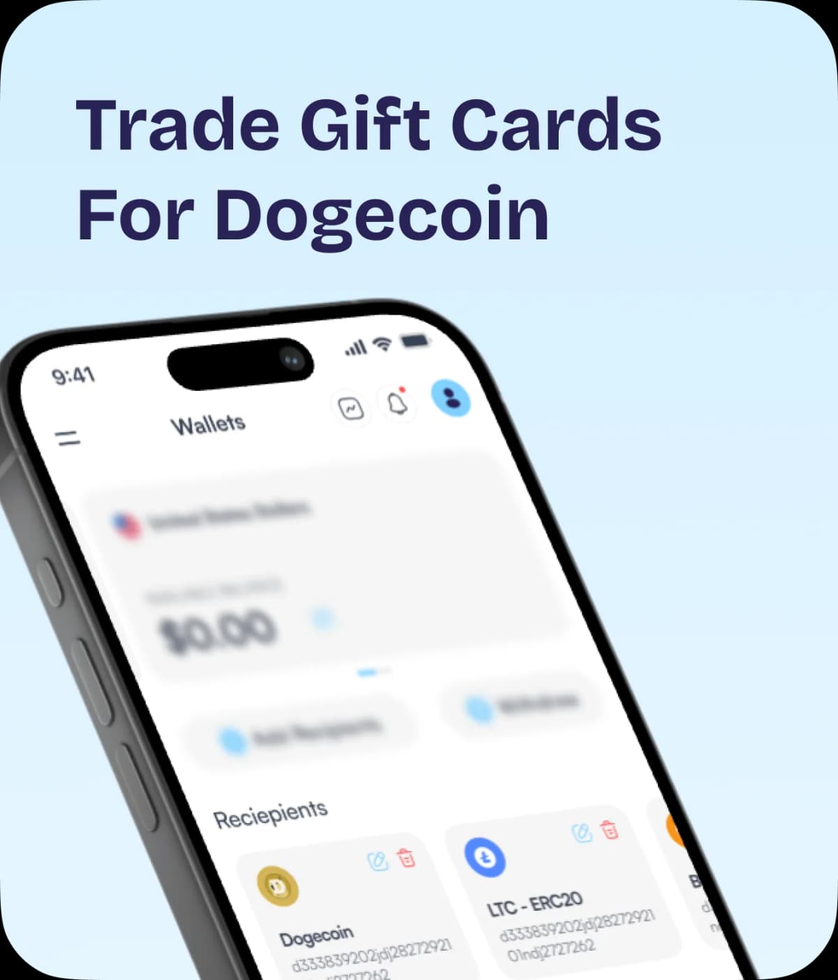 Trade A Gift CardSimply sell your gift card on the Nosh platform and choose USD as your preferred currency. Once the funds are credited to your Nosh USD Wallet, you can add your Dogecoin wallet address and withdraw the funds in Dogecoin. Nosh makes it easy to exchange your gift card for Dogecoin, Bitcoin, or other cryptocurrencies.