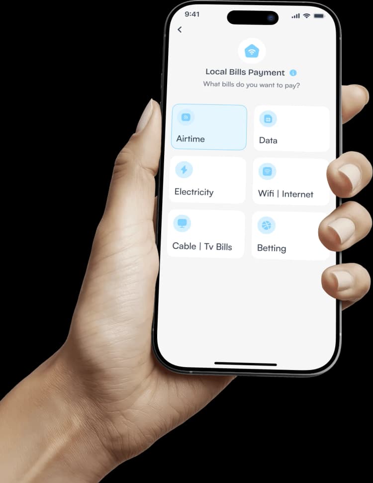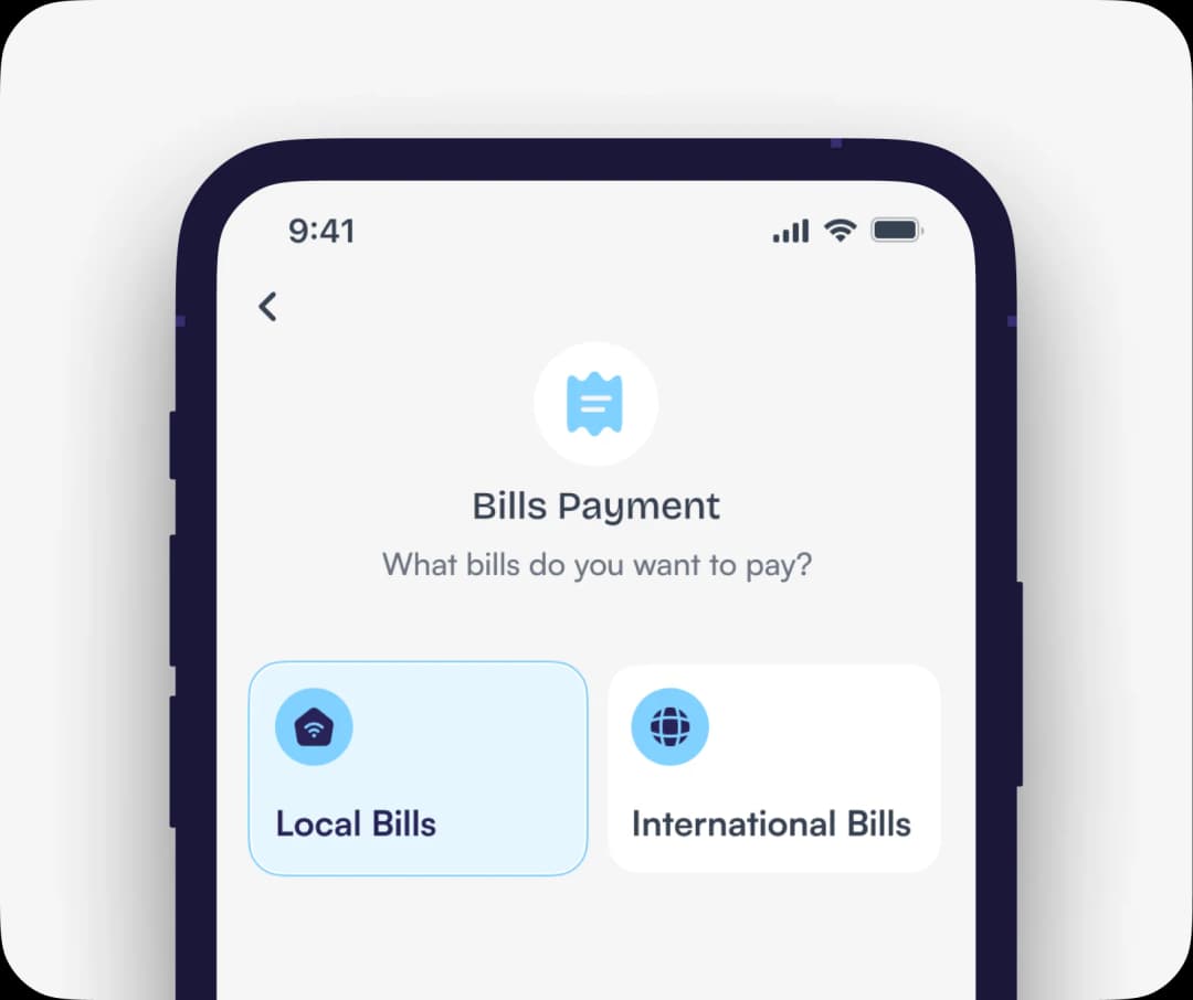 Go to Bills on your dashboard, choose Local Bills, then select the type of bill you want to pay. Input the required details and tap Continue to complete your payment.