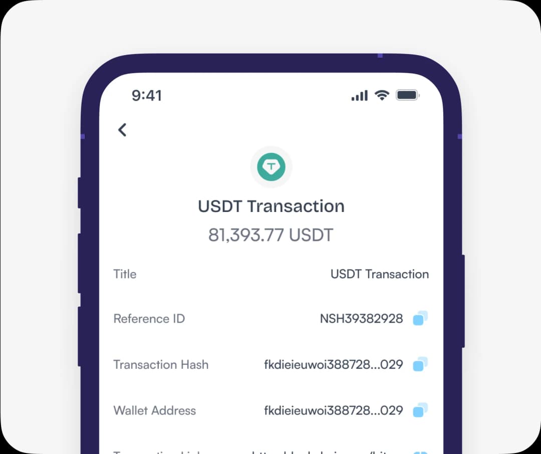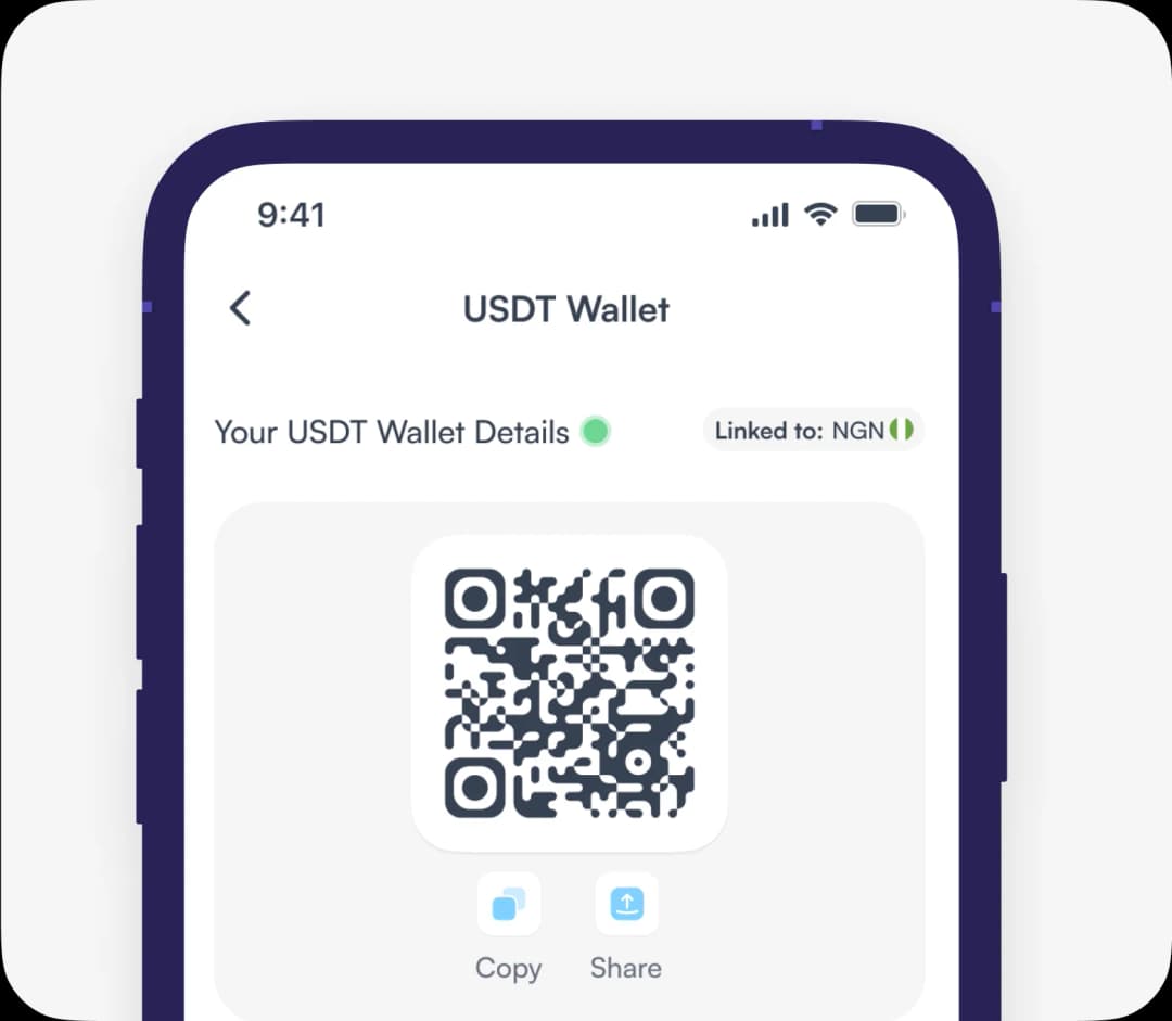 Go to crypto wallets, select USDT and follow the steps to generate your wallet address.