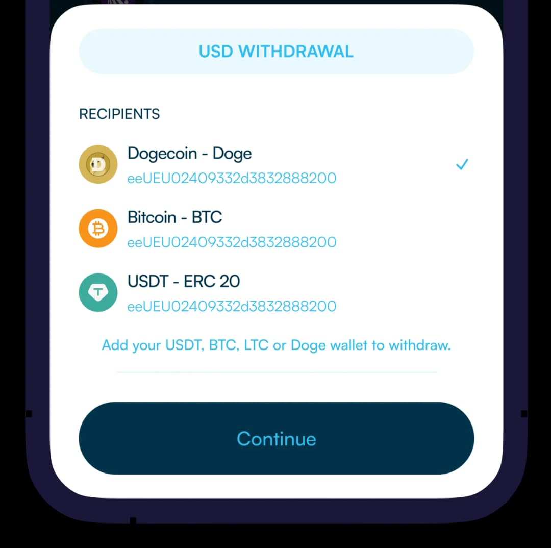 Withdraw USD into Doge Wallet